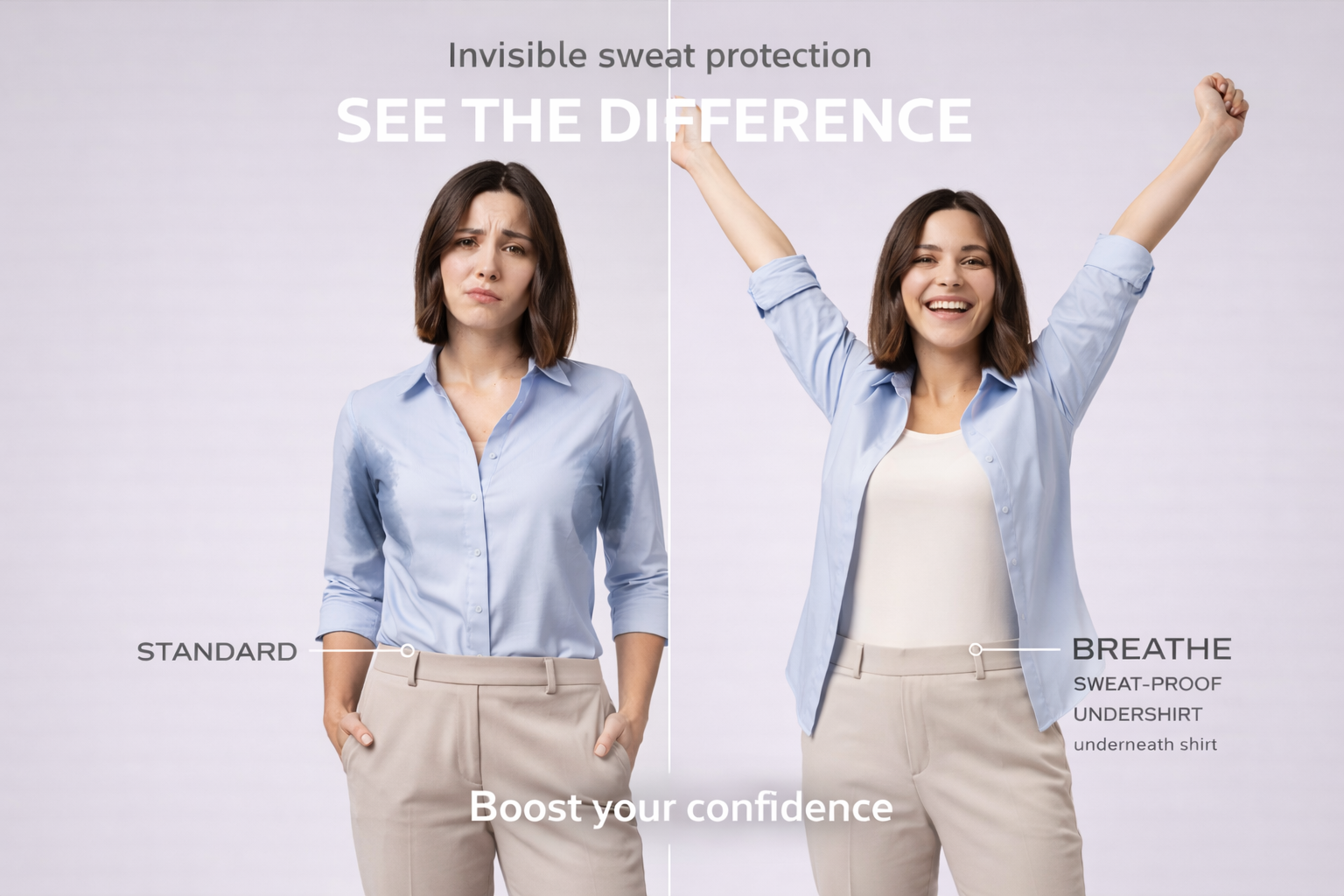 Lightweight, sweat-blocking undershirts that keep moisture hidden and confidence high, no matter how busy your day gets.