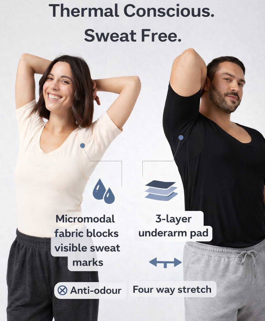 Anti odour and antibacterial fabrics that keep you fresh all day.
