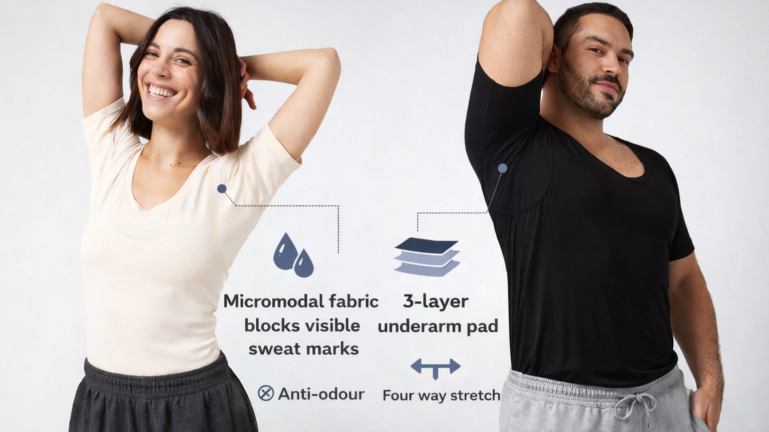 Our sweat-absorbing apparel has been described as "game-changer" and "confidence-booster" by thousands of customers. Watch the video to see how they work.