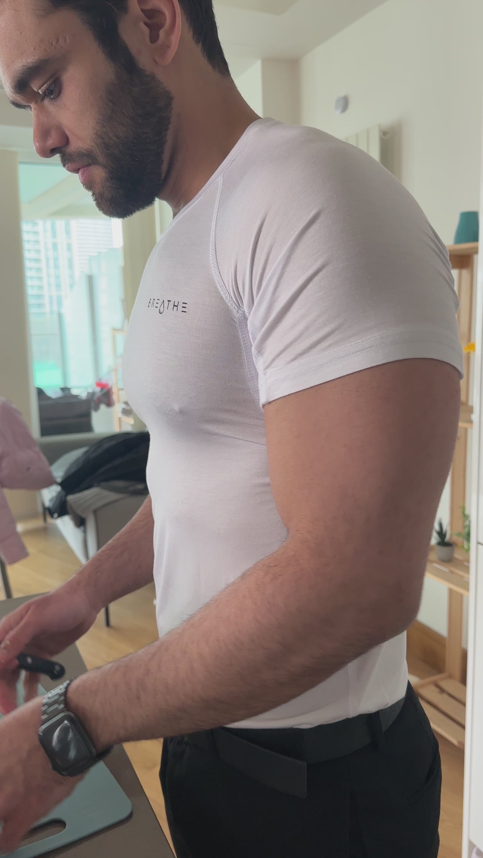- Check the sizing chart or contact us at hello@breathe-apparel.com